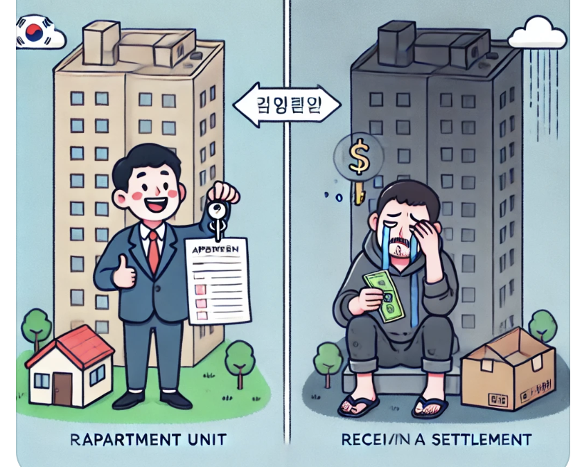 즉, 입주권은 없고 나중에 시세보다 낮은 감정가로 현금 보상을 받는 구조예요. 게다가 보상 시점도 수년 뒤로 밀리는 경우가 많아 자금이 장기간 묶이는 리스크가 큽니다.